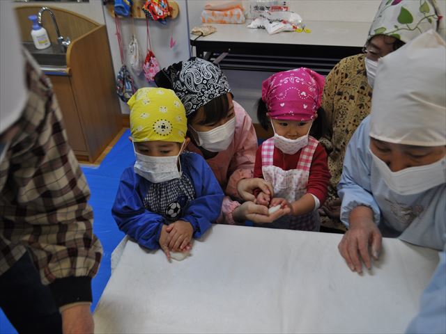 ペープサートを見た後は、 誕生児さんがいもほりのお手伝いを してくれました♪ |
